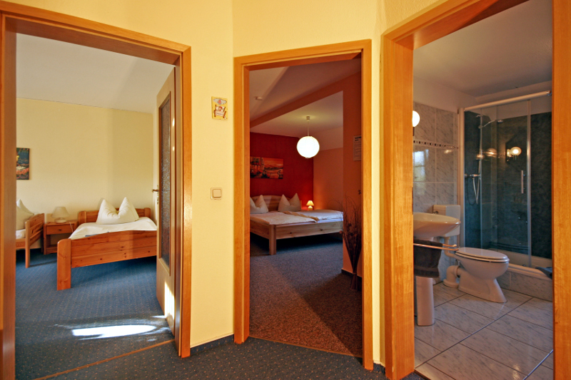 Familien und Gruppen bieten wir Ferienwohnungen mit komplett eingerichteter Küche, Bad mit Wanne und/oder Dusche sowie teilweise mit Balkon an.